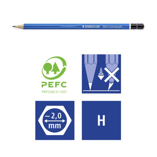 製図・ファインアート・デザインなどのプロフェッショナルユーザーから厚い信頼を受けている鉛筆。紙への定着性がよく均一な線が書けます。折れにくく磨耗が少なく滑らかな書き味です。