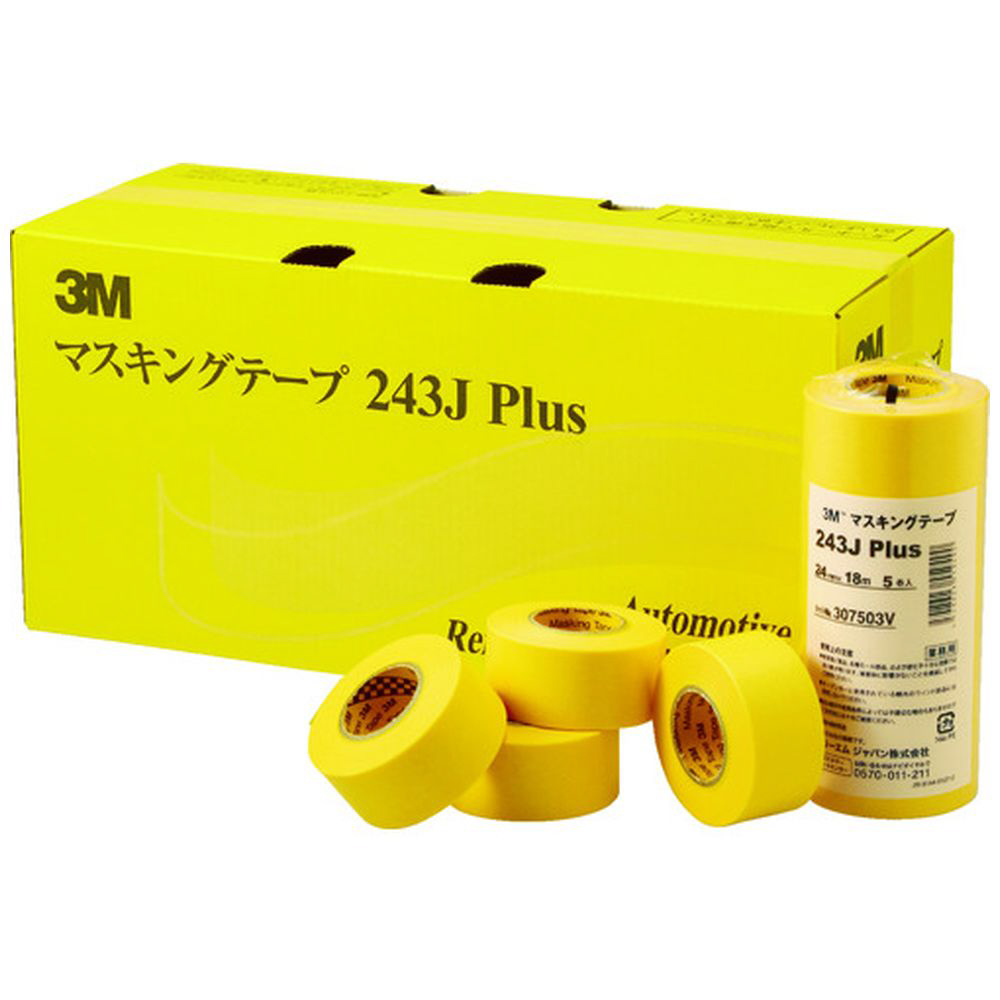 マスキングテープ 243J Plus 7巻入(幅18mm/長さ18m) 黄 243J18