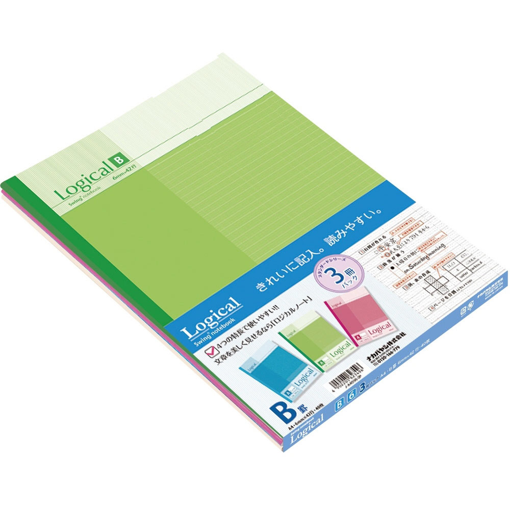 ノート スタンダード 3冊パック スイング・ロジカル カラフル A403B-3P [A4 /6mm(B罫) /ロジカル罫]
