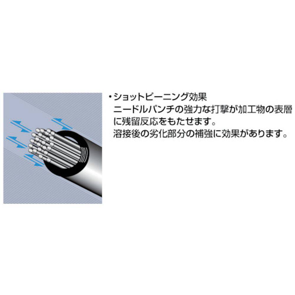 AC100V電源で使える汎用タイプの電動式高速多針タガネです。ショックアブソーバー付で反動が少なく作業者の負担を大幅に低減します。用途はく離作業に。