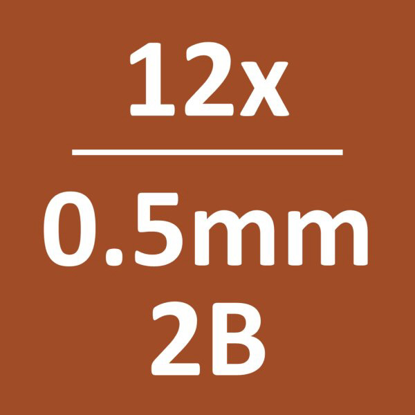 1ケース12本入り。線幅:0.5mm、硬度:2B。