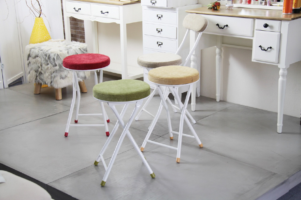 ■折りたたみ・隙間収納/スツールとチェア、どちらも【折りたたみ式】なので使わない時はスッキリコンパクトサイズ。リビング・ダイニングやキッチン、洗面所、玄関周りのちょっとした隙間に収納が可能です。