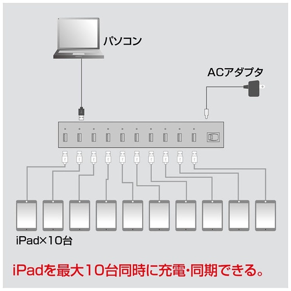 ■iPadやタブレットを最大10台を同時に同期・充電できます。