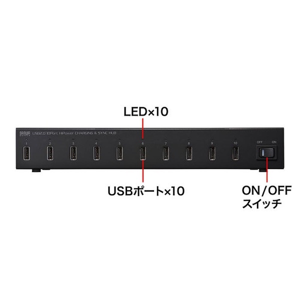 ■USB2.0のハイスピードに対応した10ポートUSBハブです。※USB1.1規格の環境でも使用することができます。
