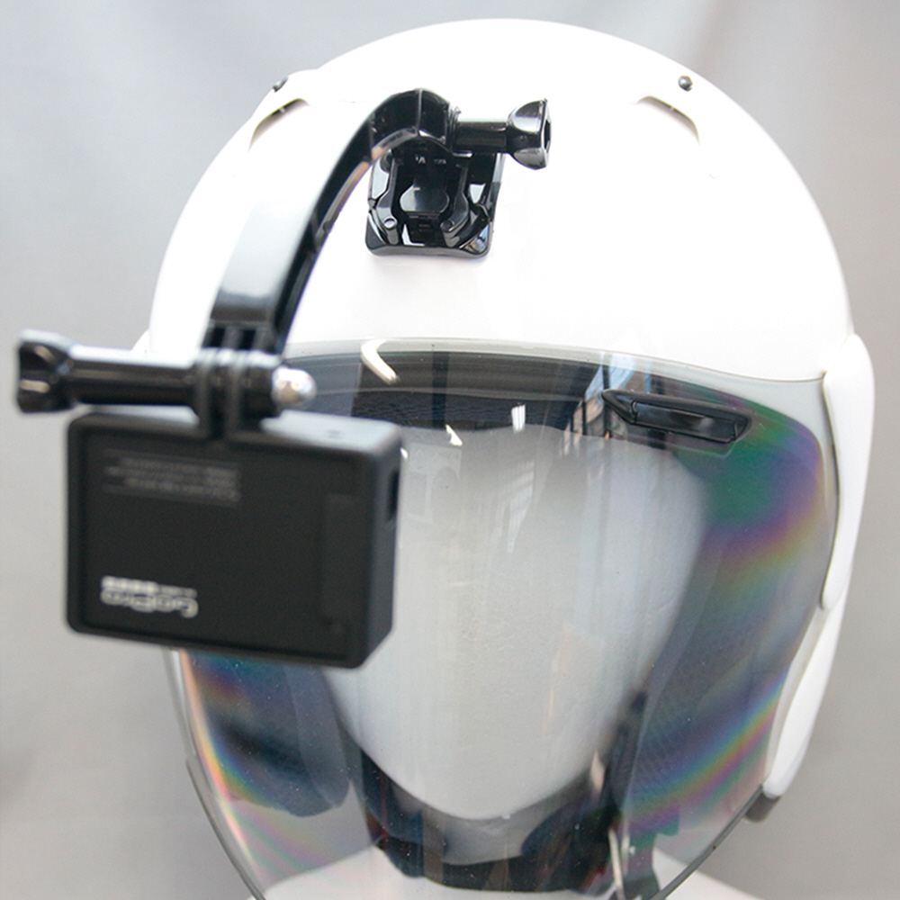 アクションカメラをヘルメットに取り付けて撮影可能