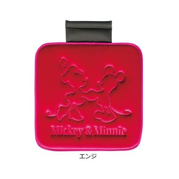 5342-02E シートクッション ディズニー/ミッキー&ミニー MMプレス 軽/普通車用 シングルプレス ストッパー付き ベロア サイズ:45×45×2cm カラー:エンジ