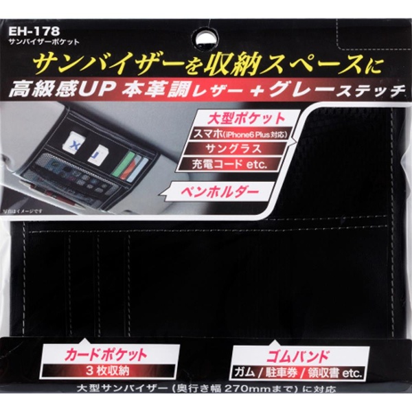 車内収納用品 EXEA(エクセア) サンバイザーポケット カラー:ブラック