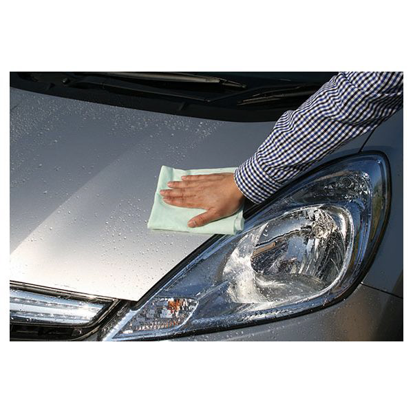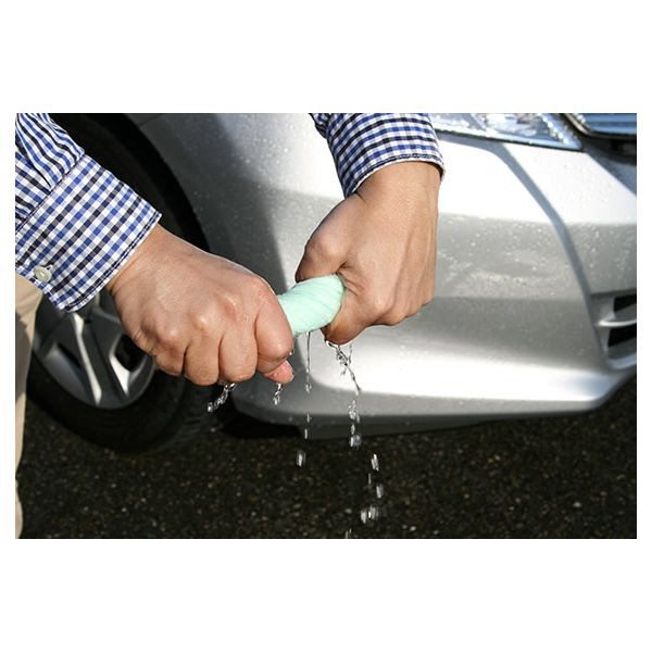 ■特殊加工のハイテククロスが、ボディについた水気をグングン吸い取り、同時に固形ワックスにも匹敵するワックス被膜を形成します。水で絞って使えば、乾いたボディにも使用できます。