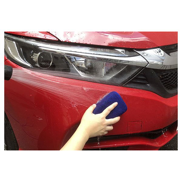 高密度で立体的に編み込まれたアクリル繊維が、虫汚れや水アカ・ピッチタールなどの微細な汚れまでしっかりからめ取る洗車スポンジです。