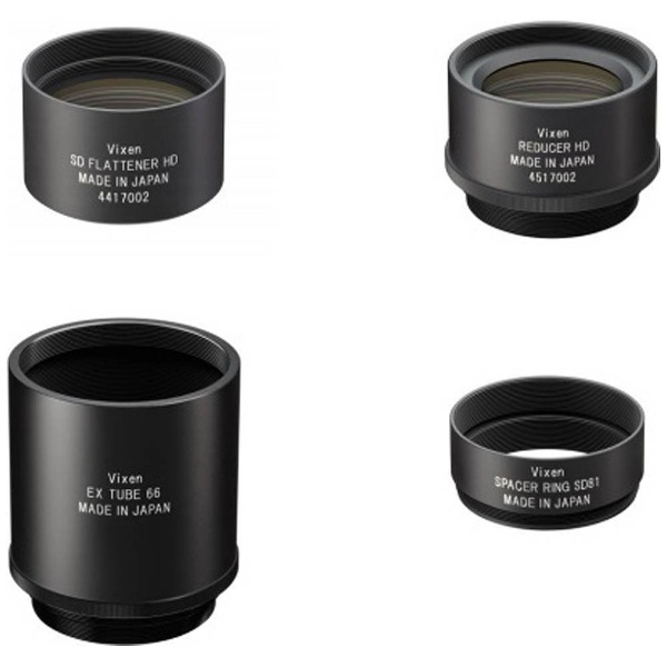 「SD レデューサーHD キット」は、「SD81S 鏡筒」「SD103S 鏡筒」「SD115S 鏡筒」用の高性能フラットナーレンズとレデューサーレンズおよび接続リングのセットです。