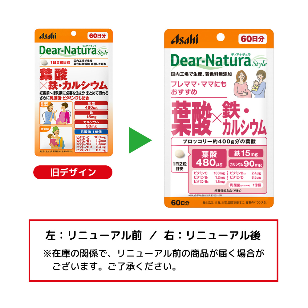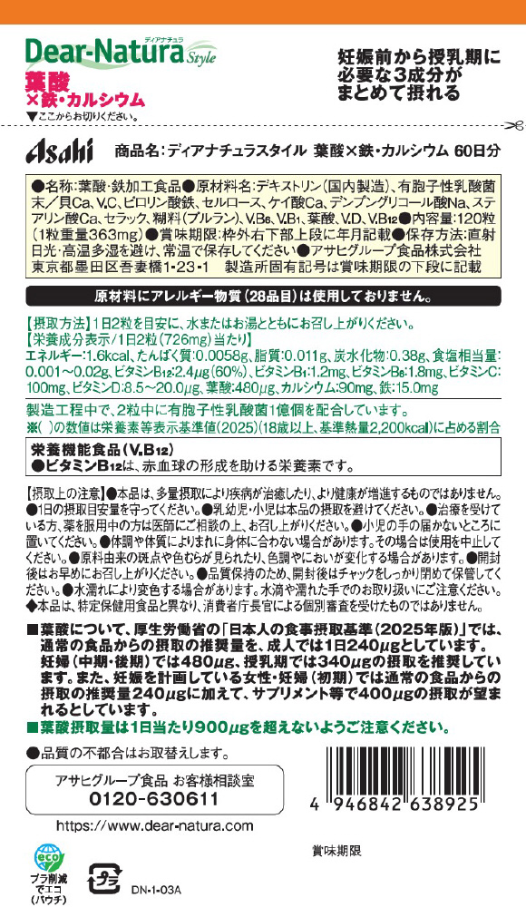 【軽減税商品】Dear-Natura Style(ディアナチュラスタイル)葉酸×鉄・カルシウム 60日分(120粒入)〔栄養補助食品〕