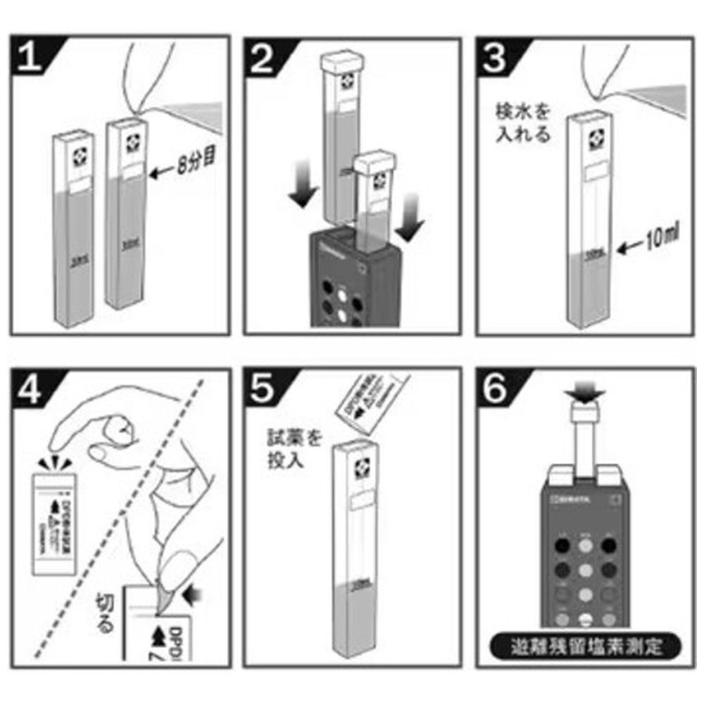 ・構成: 残留塩素計本体(比色板12種付)×1台角形試験管シリコンキャップ付×3本ビニールケース×1個