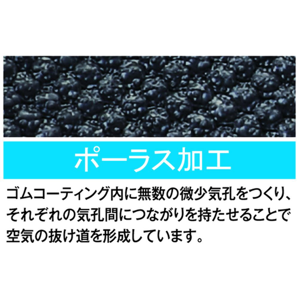 ■独自の通気ゴム素材「ポーラス加工」により、手のひらでも通気するのでムレを軽減します。
