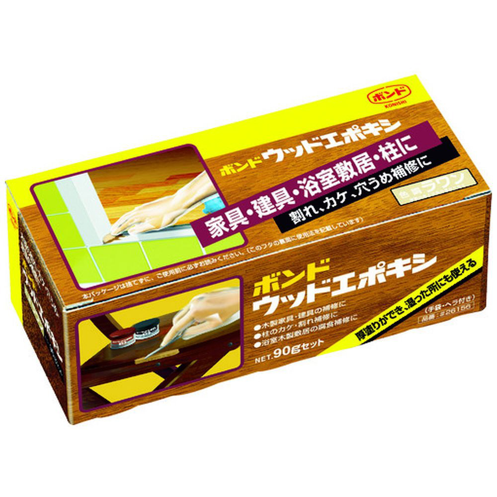 仕様 ■屋内外の木部の穴埋め、カケ、スキ間の補修などに。施工後に上塗り塗装可能です。 ■色:ラワン ■容量(g):90 ■【材質/仕上げ】 2液混合型 硬化時間(20℃):6時間 可使時間(20℃):40分 ■【セット内容/付属品】・主成分:エポキシ樹脂系 ■原産国:JP ■質量:日本147