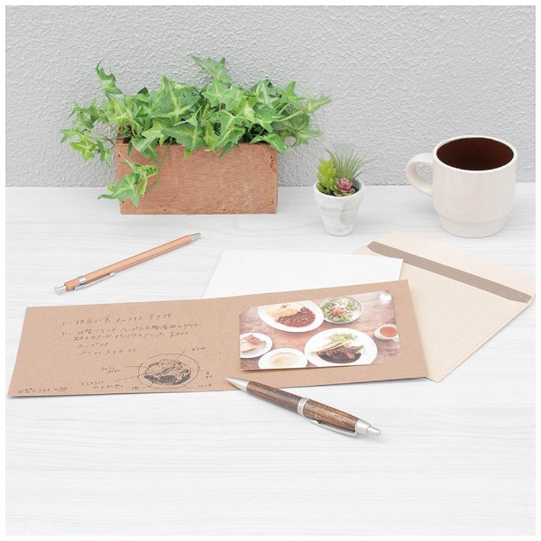 仕様 ■封筒寸法:タテ133×ヨコ168mm ■本体重量:65g ■本体:クラフト紙厚紙 ■封筒:クラフト紙 ■各3枚入り ■日本製