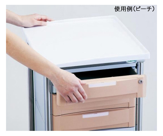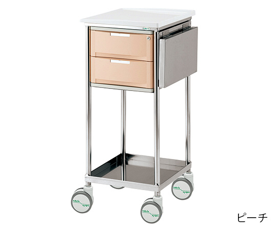8-5893-24 ナビスメイト・トレイワゴン 補助天板付き 2段BOX ピーチ