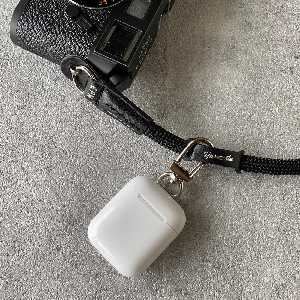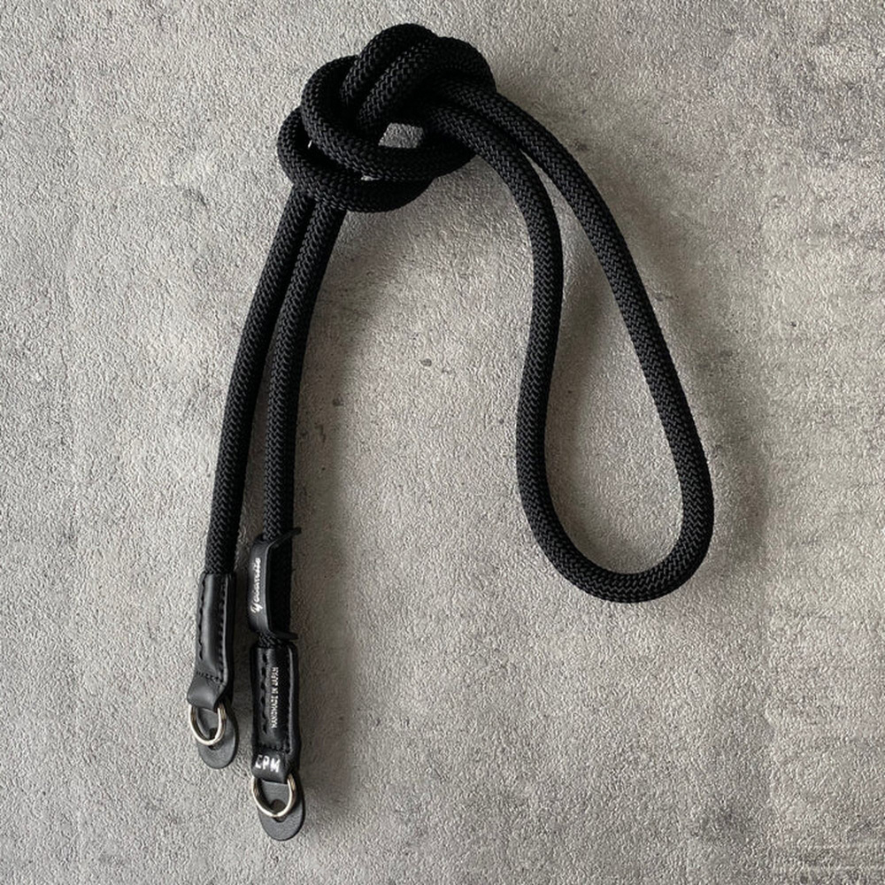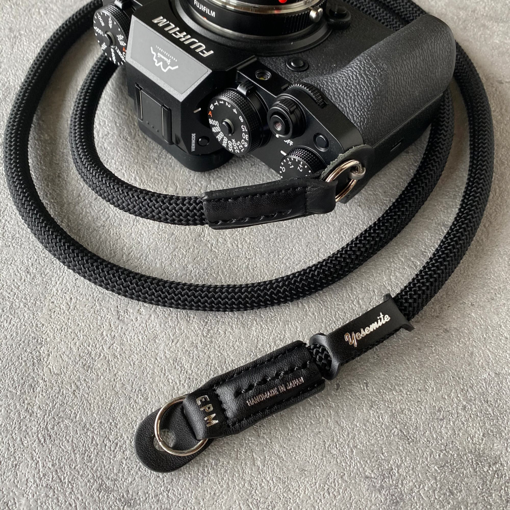 本格クライミングロープを使用した、斜めがけ仕様のヨセミテカメラストラップ。