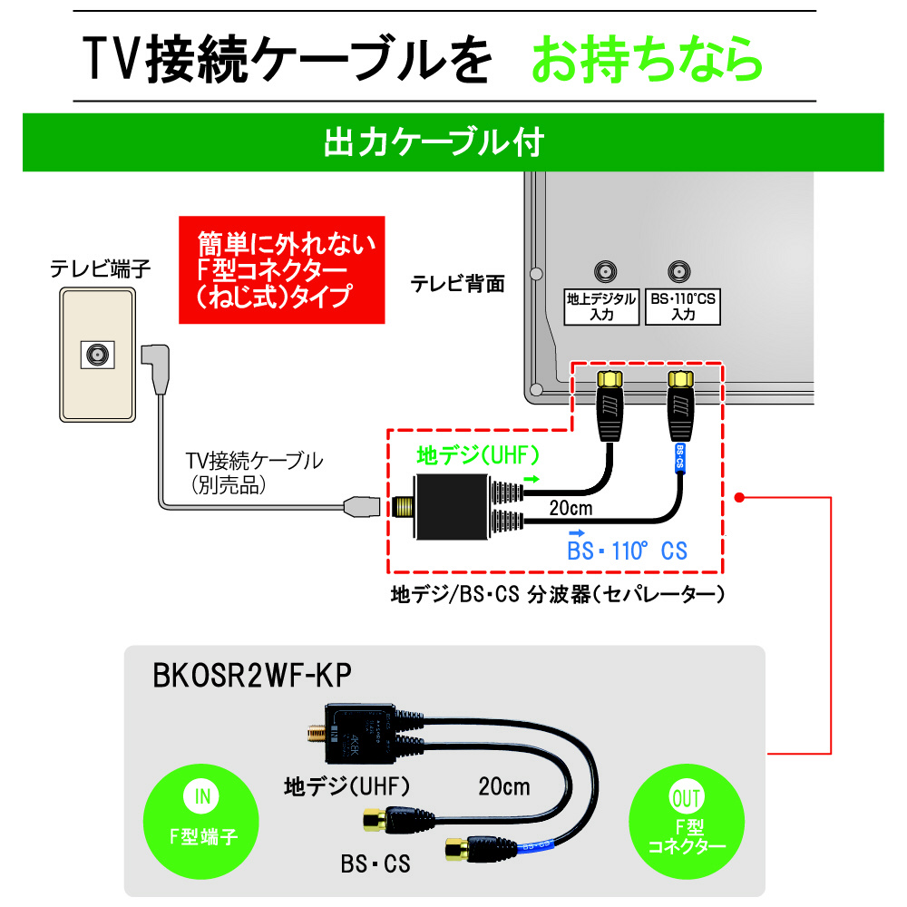 4K8K衛星放送対応分波器 (0.2mケーブル付) BKOSR2WFKP BKOSR2WF-KP