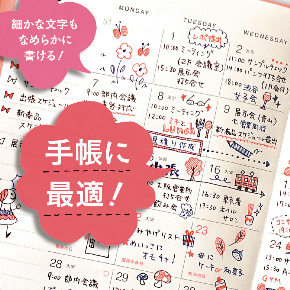 ボールペンには、「クセになる、なめらかな書き味。」のジェットストリームを採用。