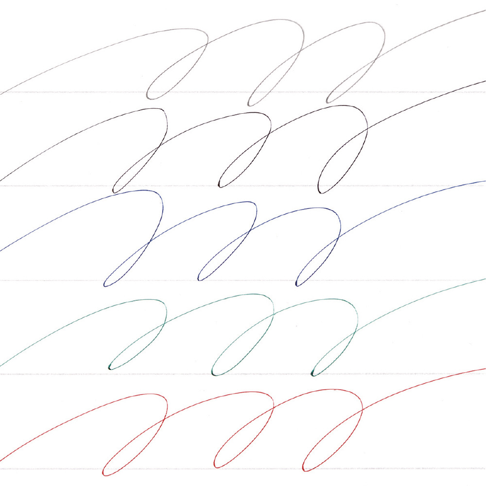 従来の油性インクにありがちな、描線にふれて手が汚れるといったストレスを軽減しました。