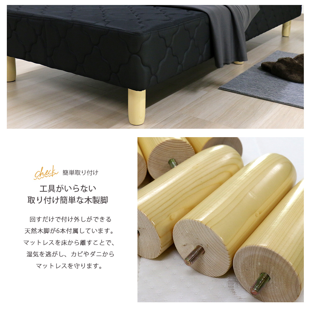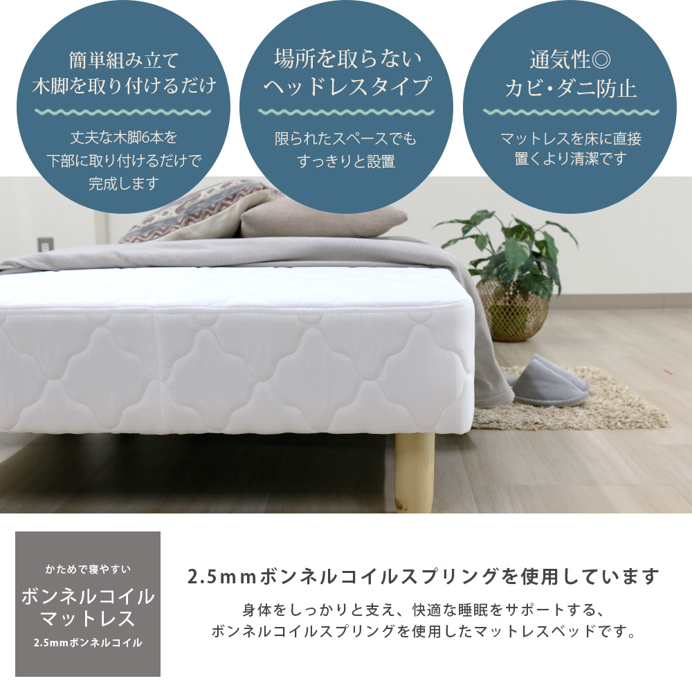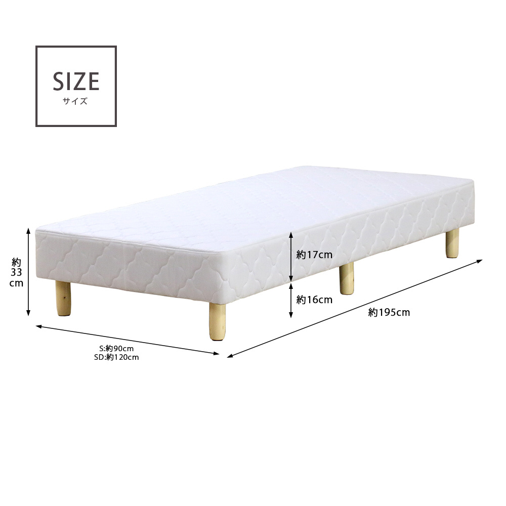 コイルスプリングタイプのマットレスベッド。床下スペース約16cm。
