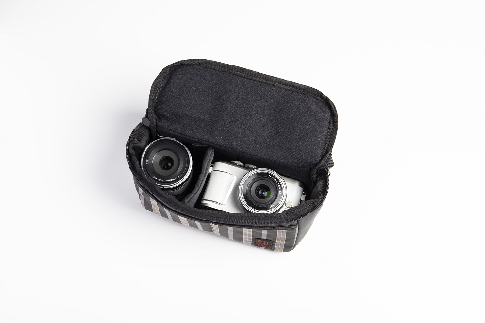 デザインと機能性にこだわったおしゃれなボックスタイプのカメラポーチ(Sサイズ)。