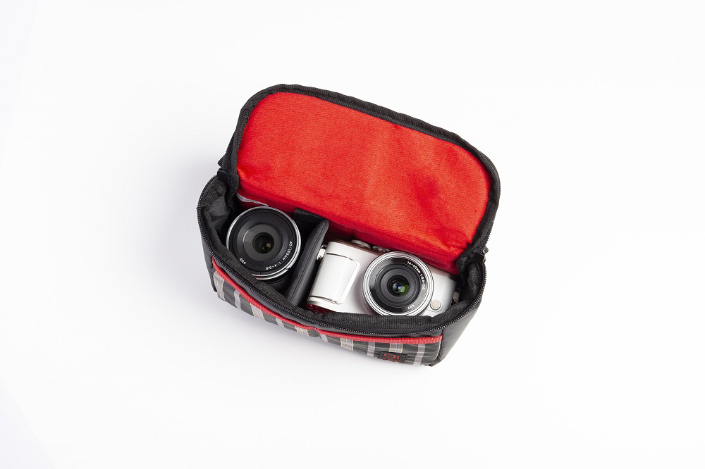 デザインと機能性にこだわったおしゃれなボックスタイプのカメラポーチ(Sサイズ)。