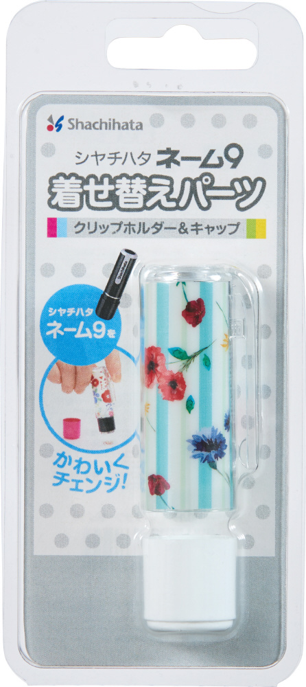 これまで、キャラクターとのコラボレーションをはじめ、男女問わず多くの方に楽しんでいただけるさまざまなデザインを発売し、50種類以上を展開してまいりました。今回発売する「クリップホルダー&キャップ」は、ネーム9をバラエティ豊かなデザインの中からお好みのデザインに着せ替えることができる、クリップホルダーとキャップがセットになった全12種の着せ替えパーツです。カラフルなフラワー柄や、流行りの北欧雑貨をイメージした北欧柄やリーフ柄、シンプルでありながら存在感のあるドット柄など、お好みによって選べるデザインをご用意しました。