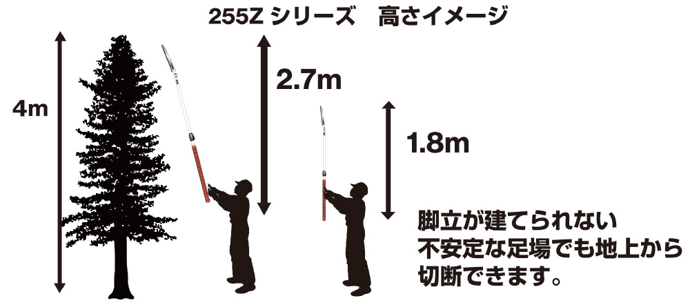 ●手の届かない高さの庭木も脚立に上らずに安全作業。