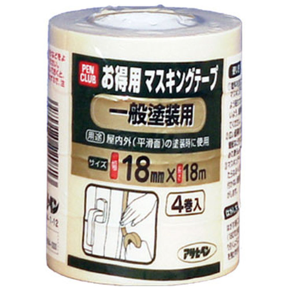 お徳用マスキングテープ(一般塗装用)4巻入(幅18mm/長さ18m) 白 AP901160