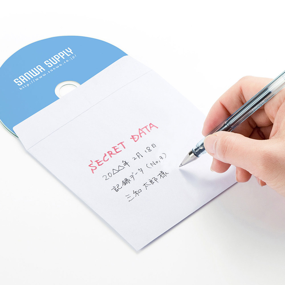 手軽に書き込める紙製のDVD・CDスリーブケース。ディスクが見えない窓なしタイプ。100枚入り。