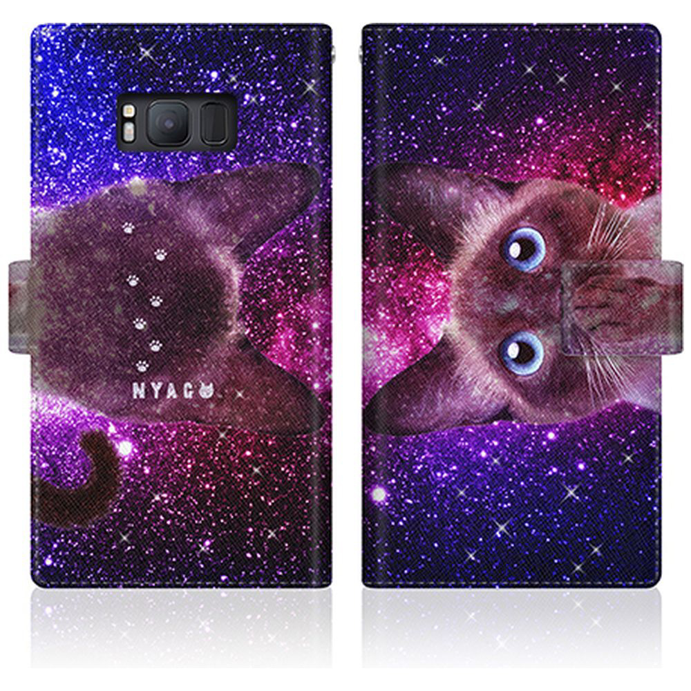 NYAGO SCV36 スリム手帳型ケース NYAGO ノート キュート 肉球をペロペロするにゃ〜。宇宙柄 シャムちゃん NYAGO SCV36-BNG2S2272-78