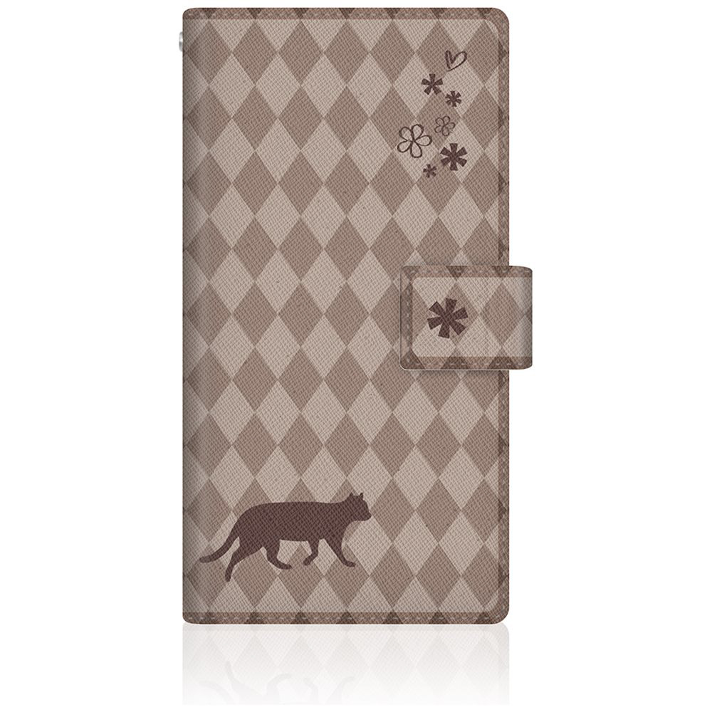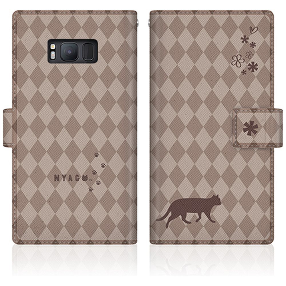 NYAGO SCV36 スリム手帳型ケース NYAGO ノート フレンチ フラワー ダイアリー キャット シルエット ダイヤ柄 & てくてくお散歩だにゃん NYAGO チョコレート SCV36-BNG2S2463-78