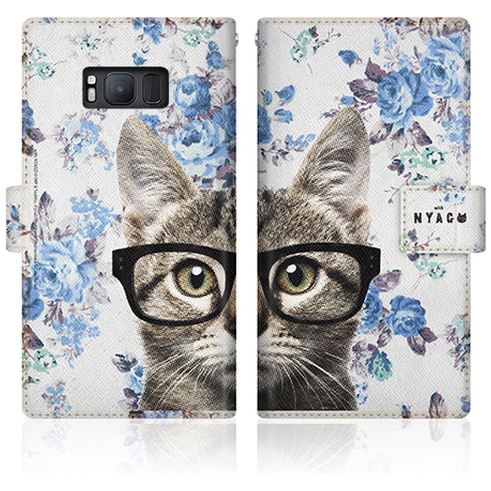 NYAGO SCV36 スリム手帳型ケース NYAGO ノート キュート メガネ フェイス キャット - サマー フラワー だにゃ〜。 - NYAGO ブルー SCV36-BNG2S2726-78