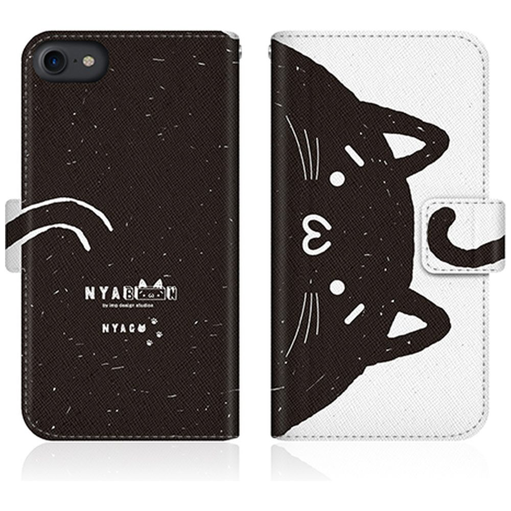 NYAGO iPhone7 スリム手帳型ケース NYABON ショボーン (´・ω・`) ノート しっぽ - モノクロ NYAGO iPhone7-BNG2S2246-78