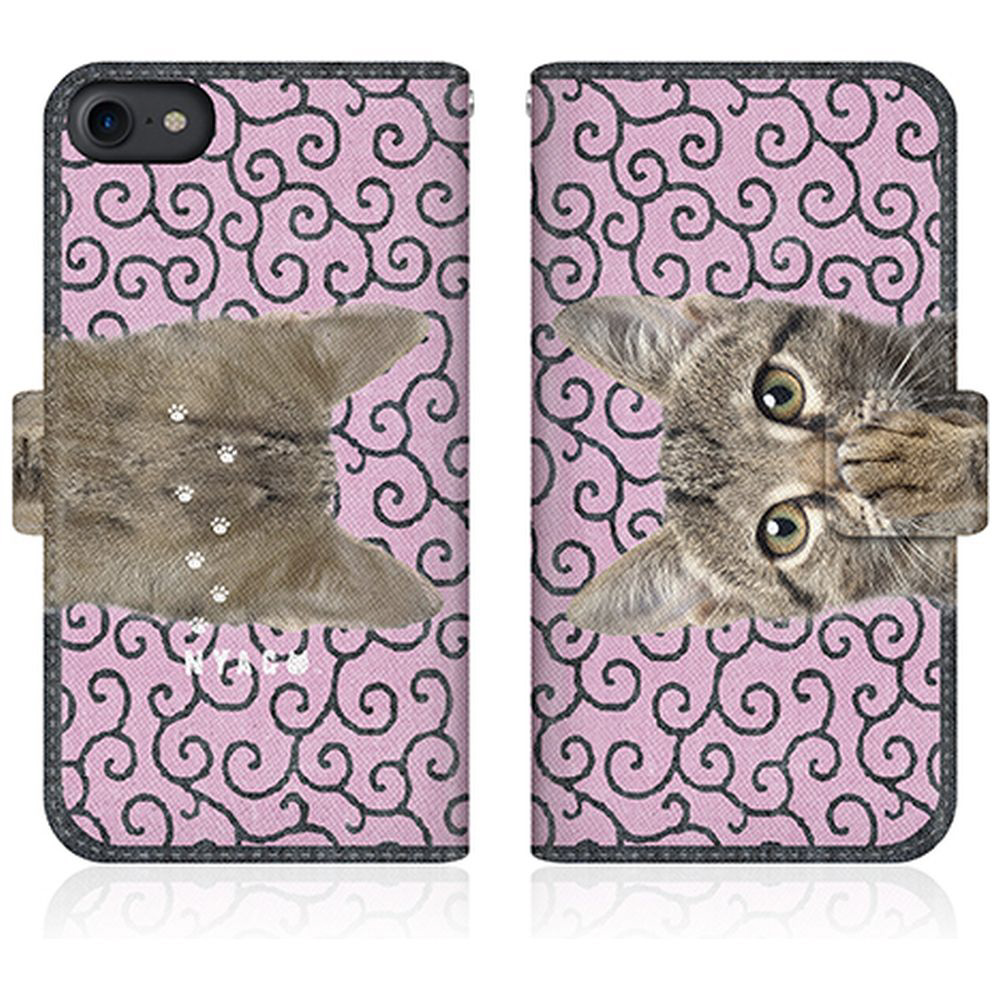 NYAGO iPhone7 スリム手帳型ケース NYAGO ノート キュート 肉球をペロペロするにゃ〜。 - にゃんとも 和風 だにゃ〜。 NYAGO 唐草模様 ピンク iPhone7-BNG2S2450-78