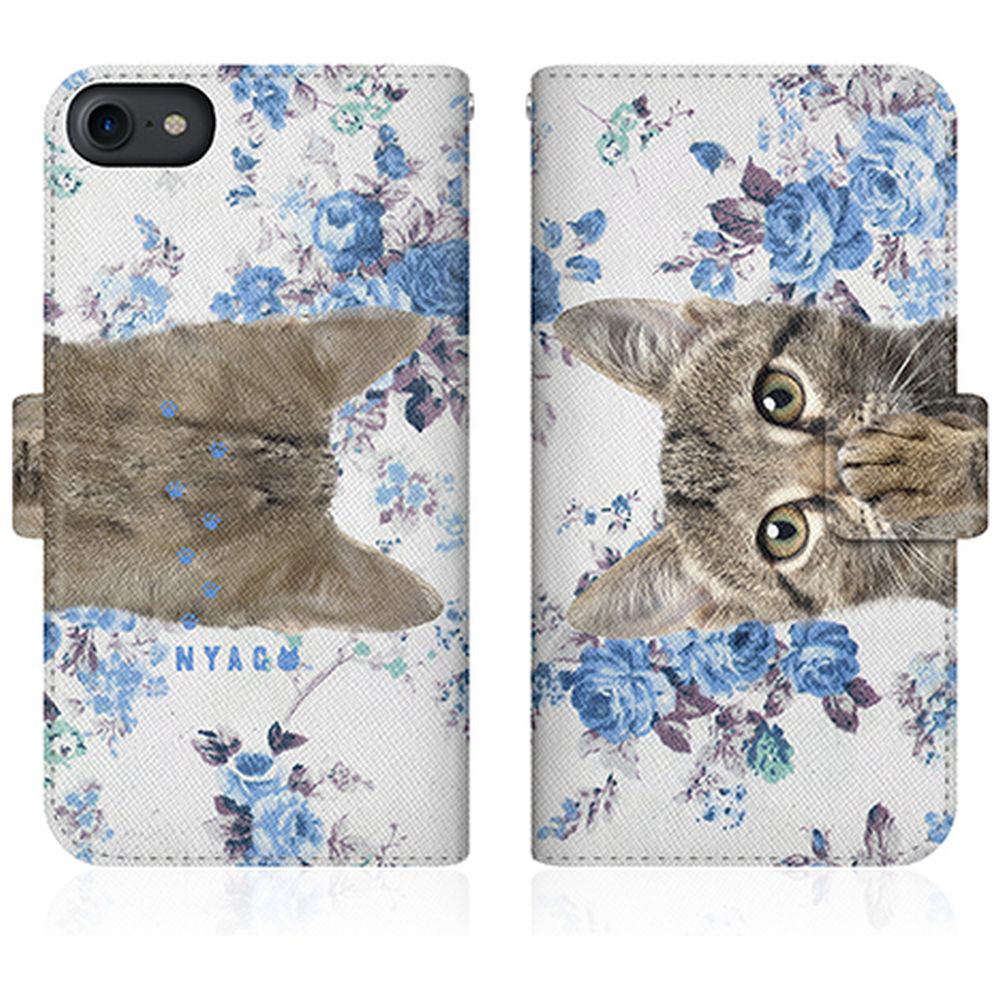 NYAGO iPhone7 スリム手帳型ケース NYAGO ノート キュート 肉球をペロペロするにゃ〜。 サマー フラワー だにゃ〜。 NYAGO ブルー iPhone7-BNG2S2453-78