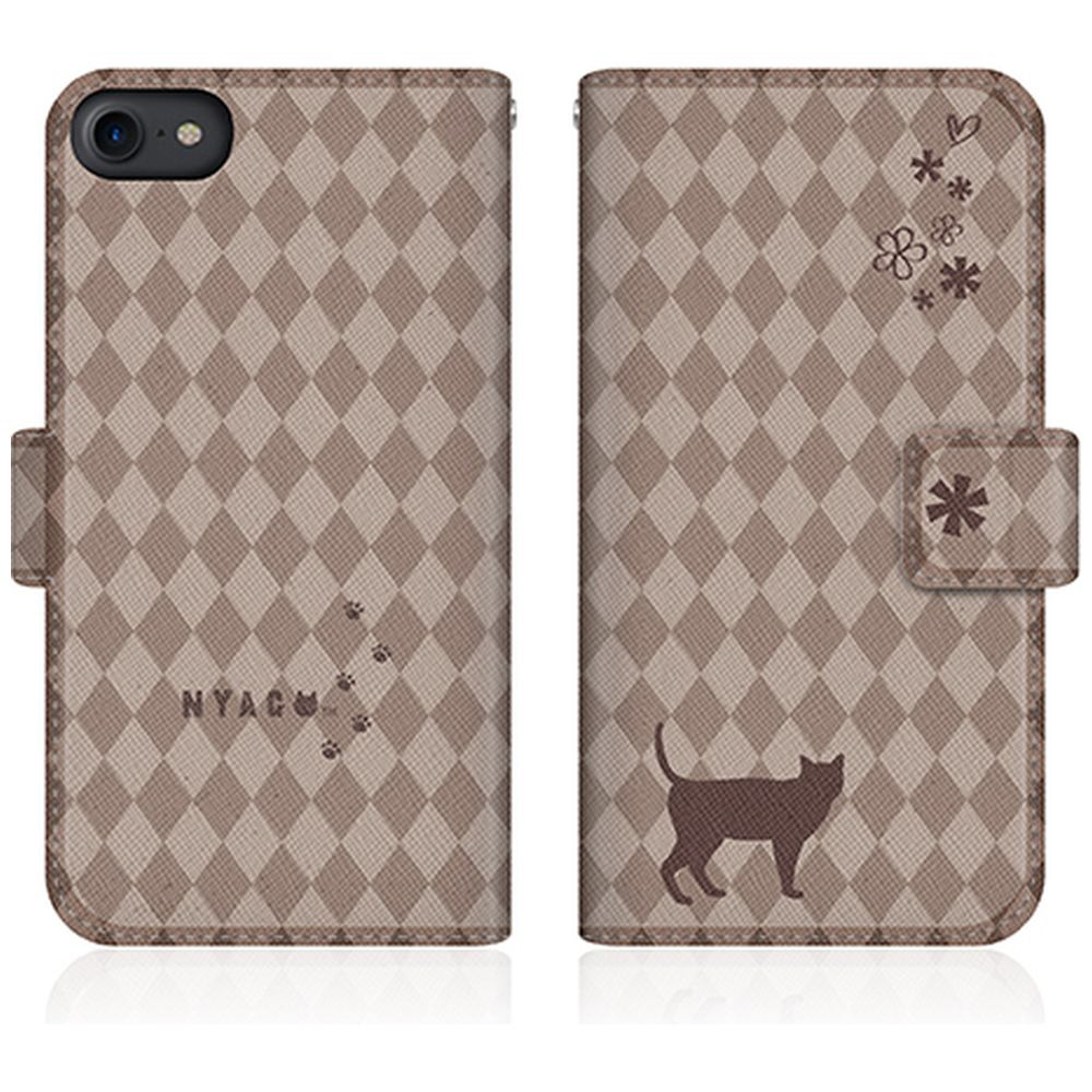 NYAGO iPhone7 スリム手帳型ケース NYAGO ノート フレンチ フラワー ダイアリー キャット シルエット ダイヤ柄 & なんだにゃ? NYAGO チョコレート iPhone7-BNG2S2455-78