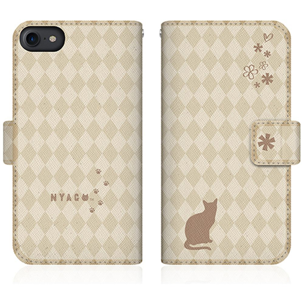 NYAGO iPhone7 スリム手帳型ケース NYAGO ノート フレンチ フラワー ダイアリー キャット シルエット ダイヤ柄 & おすましだにゃん。 NYAGO クリーム iPhone7-BNG2S2458-78