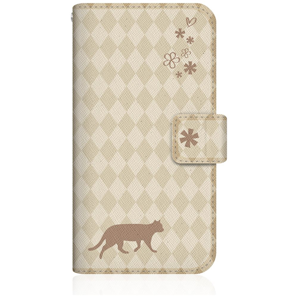 NYAGO iPhone7 スリム手帳型ケース NYAGO ノート フレンチ フラワー ダイアリー キャット シルエット ダイヤ柄 & てくてくお散歩だにゃん NYAGO クリーム iPhone7-BNG2S2462-78