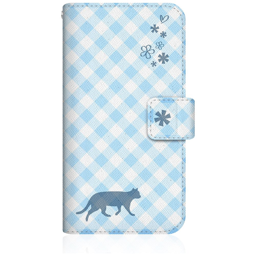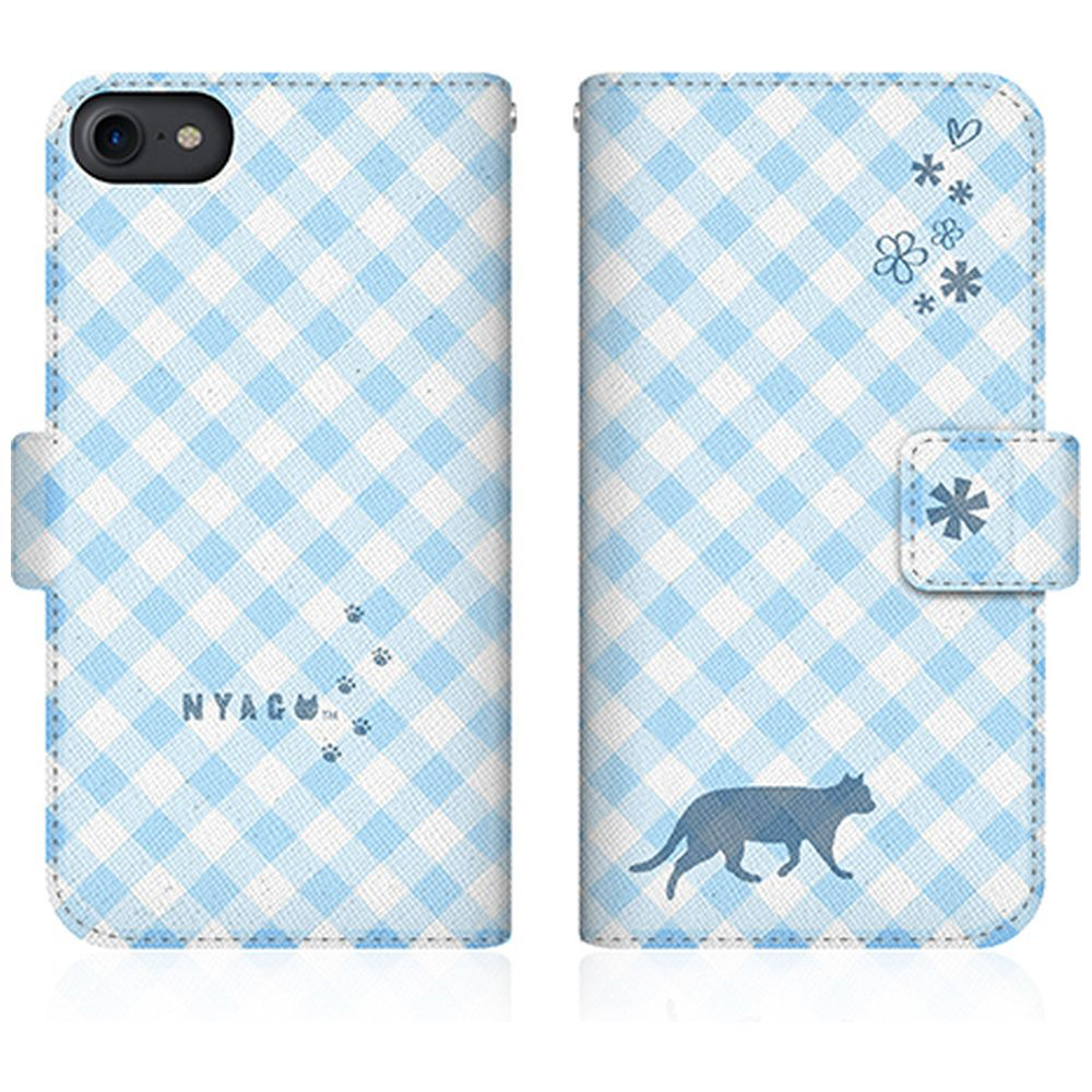 NYAGO iPhone7 スリム手帳型ケース NYAGO ノート サマー フラワー ダイアリー キャット シルエット - ブルー チェッククロス柄 & てくてくお散歩 NYAGO iPhone7-BNG2S2675-78