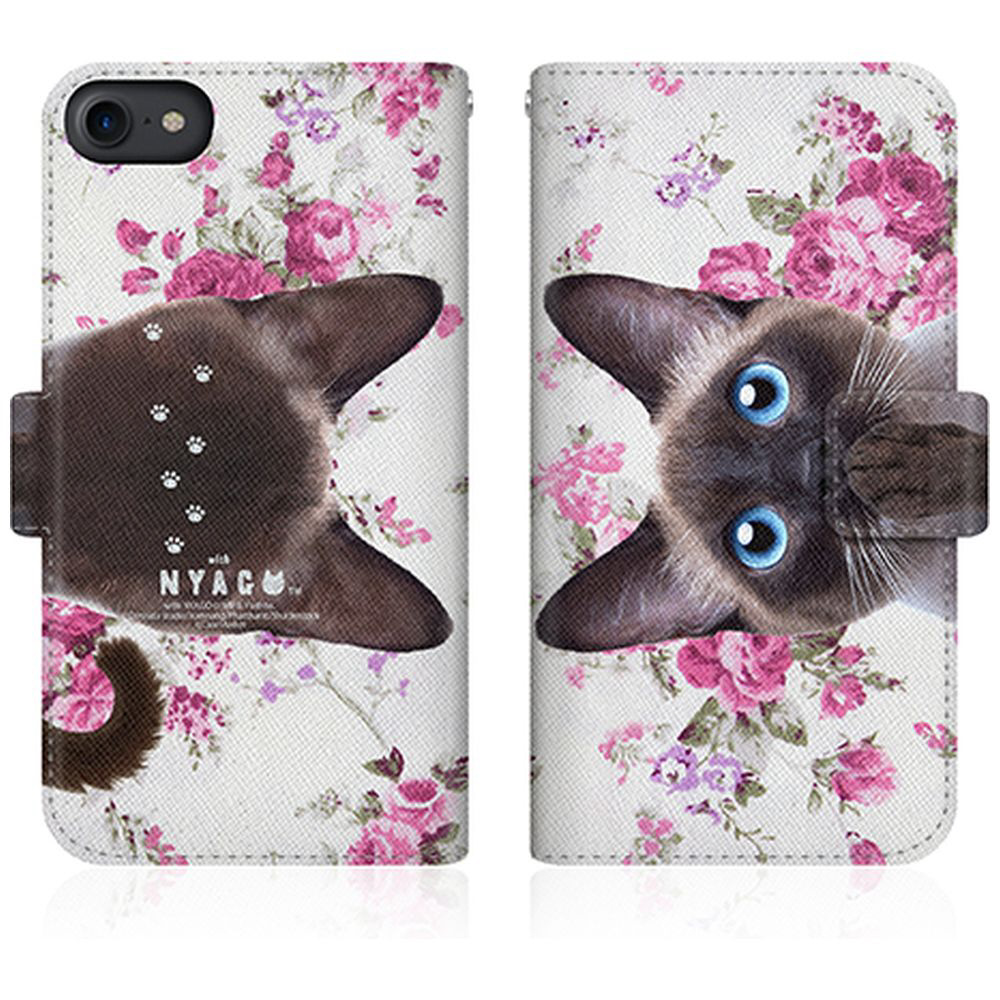 NYAGO iPhone7 スリム手帳型ケース NYAGO ノート キュート 肉球をペロペロするにゃ〜。 - シャムちゃん サマー フラワー だにゃ〜。 NYAGO ピンク iPhone7-BNG2S2727-78