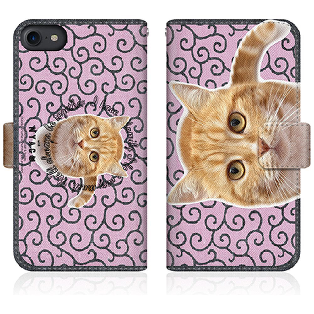 NYAGO iPhone7 スリム手帳型ケース NYAGO ノート キュート 甘えんぼう 茶トラ 猫 ペロペロするにゃ〜。 にゃんとも 和風 だにゃ〜。 NYAGO 唐草模様 ピンク iPhone7-BNG2S2760-78