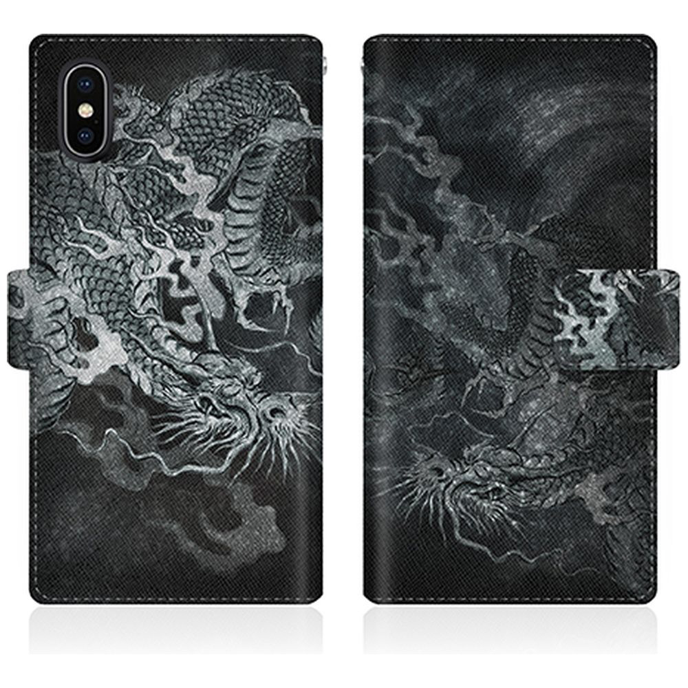 CaseMarket iPhoneX スリム手帳型ケース 龍の咆哮 - 黒 ダイアリー CaseMarket iPhoneX-BCM2S2160-78