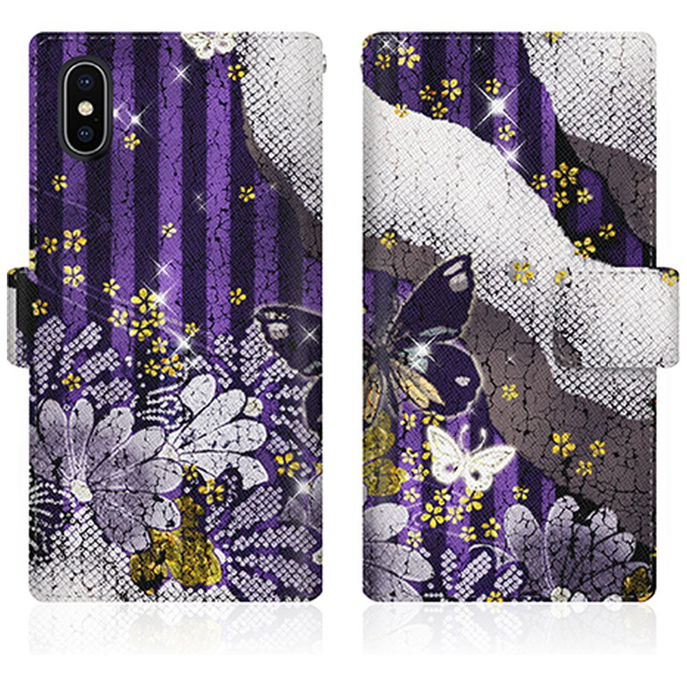 CaseMarket iPhoneX スリム手帳型ケース 和柄 ストライプ 紫 蝶 スリム ダイアリー CaseMarket iPhoneX-BCM2S2229-78