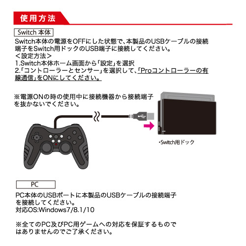 ドックのUSB端子に挿して使用する有線タイプのコントローラ!