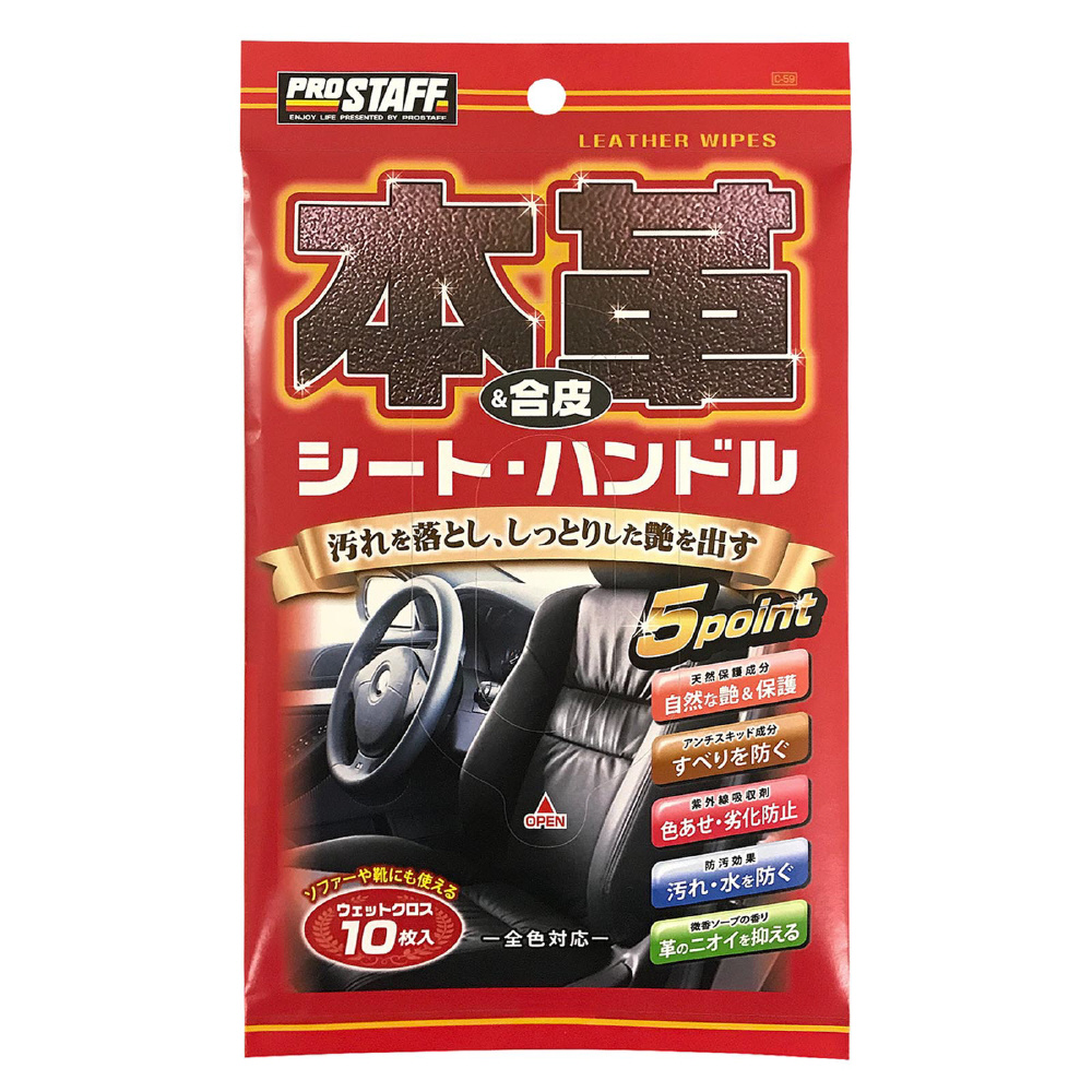 C-59 洗車用品 ウエットシート 本革&合皮用ウェットクロス シート&ハンドル C-59