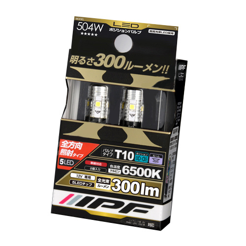 ●高放熱性・高光束維持率(明るさの持続性)・低ラジオノイズなど、小型T10サイズでは困難だった超高輝度化と高品質を、IPFの最新テクノロジーを投入し、ついに実現しました。