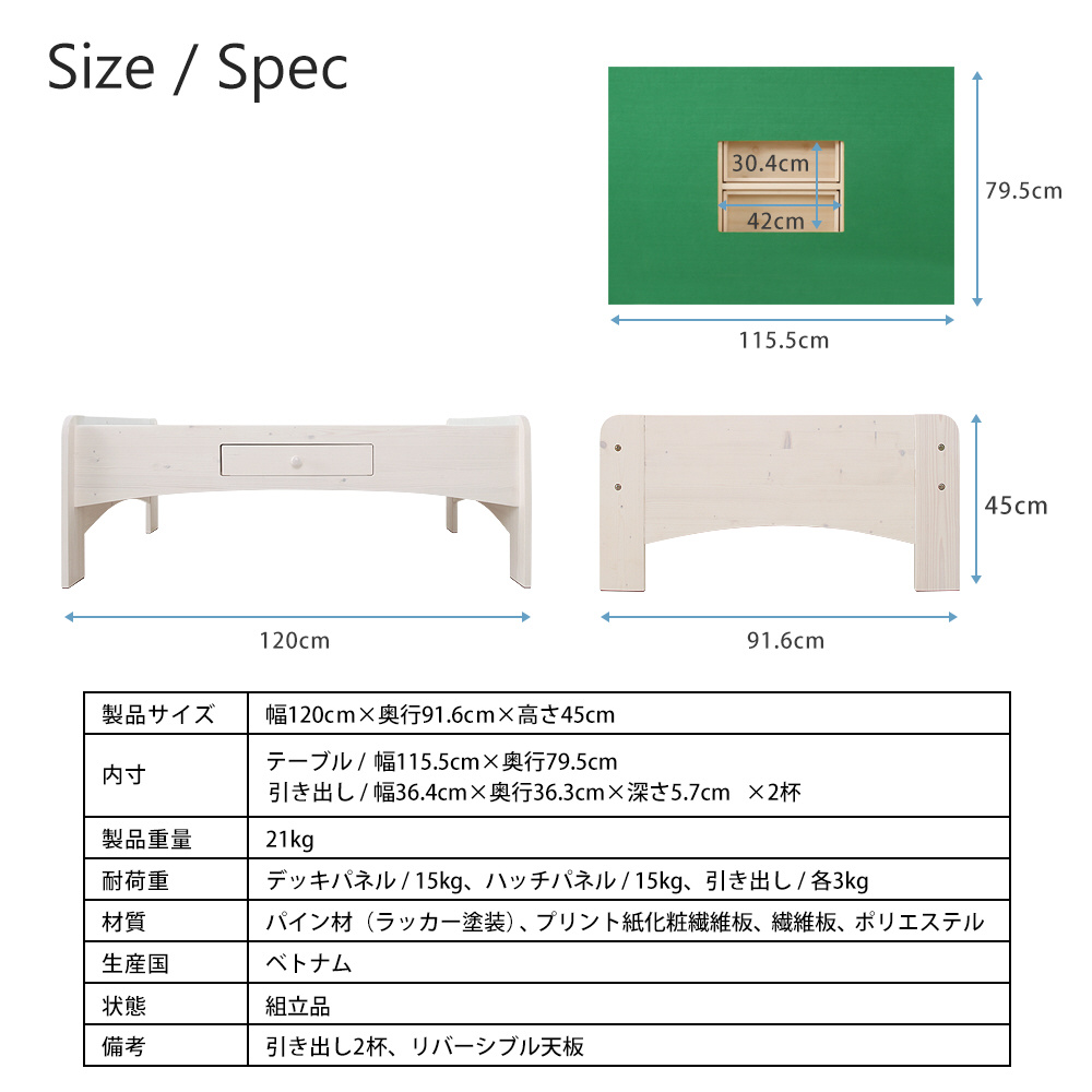 天然木プレイテーブル (幅120×奥行91.6×高さ45cm) JAJAN ホワイト JJ-120PTW