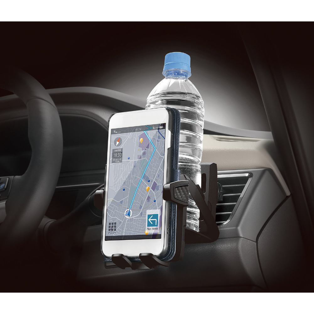 ■手帳型ケースに入れたスマートフォンもホールドできます。●品名 DRINK HOLDER●カラー ブラック(BLACK)●製品重量 116g●製品サイズ H100×W90×D70(mm)●パッケージ重量 200g●パッケージサイズ H180×W110×D90(mm)